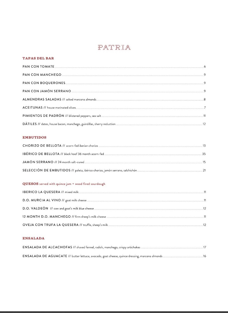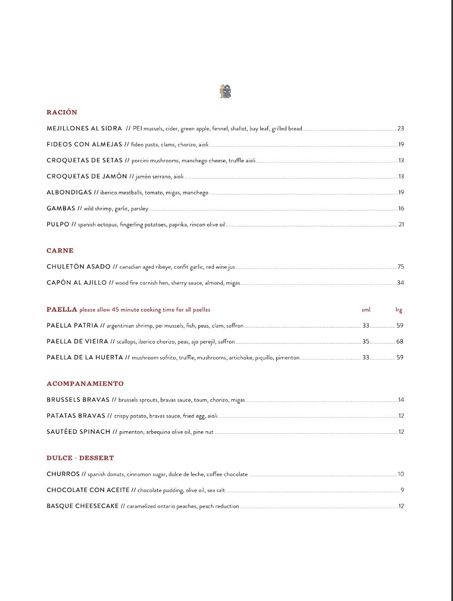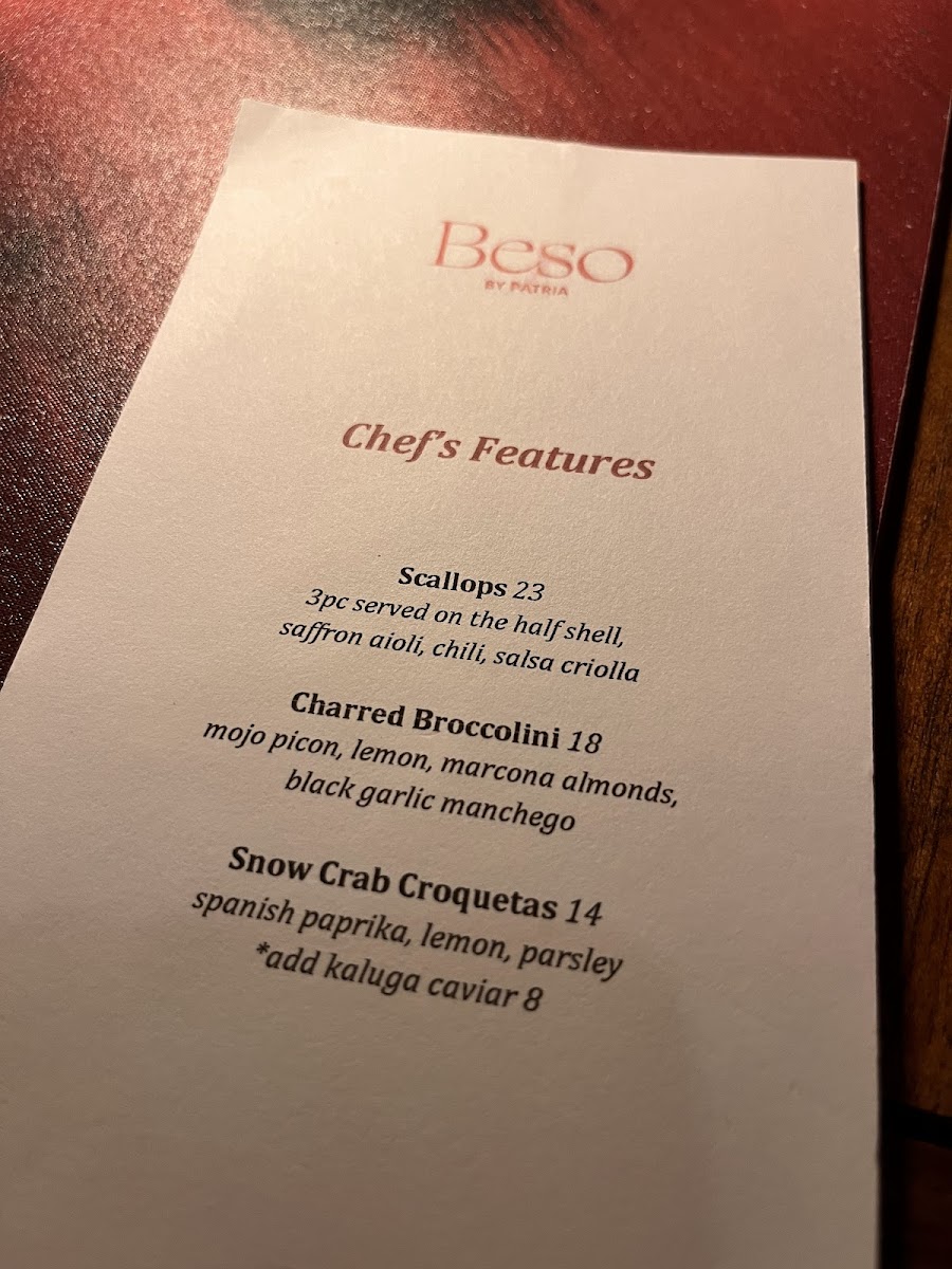 Beso by Patria - Spanish Restaurant Toronto Menu