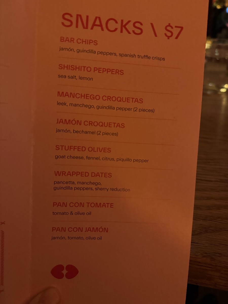 Overall, the menu balances familiar Spanish comfort foods with refined touches, inviting diners to enjoy authentic flavors in a setting that feels both approachable and thoughtfully crafted.